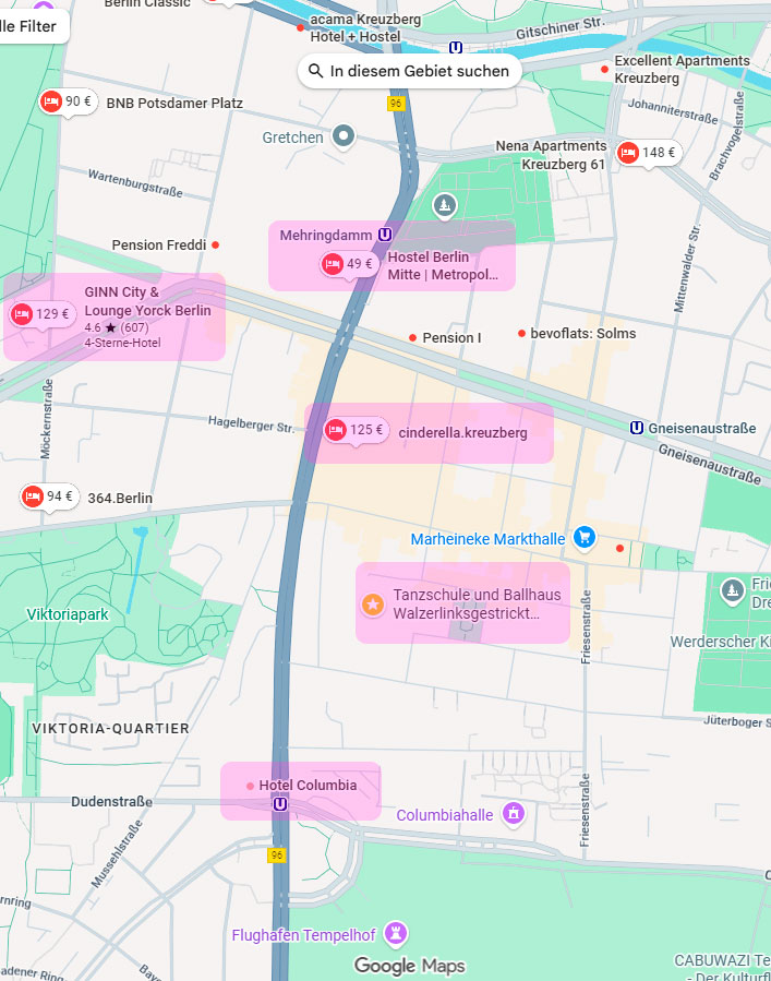 Hotels und Restaurants rund um das Ballhaus Walzerlinksgestrickt in Berlin-Kreuzberg